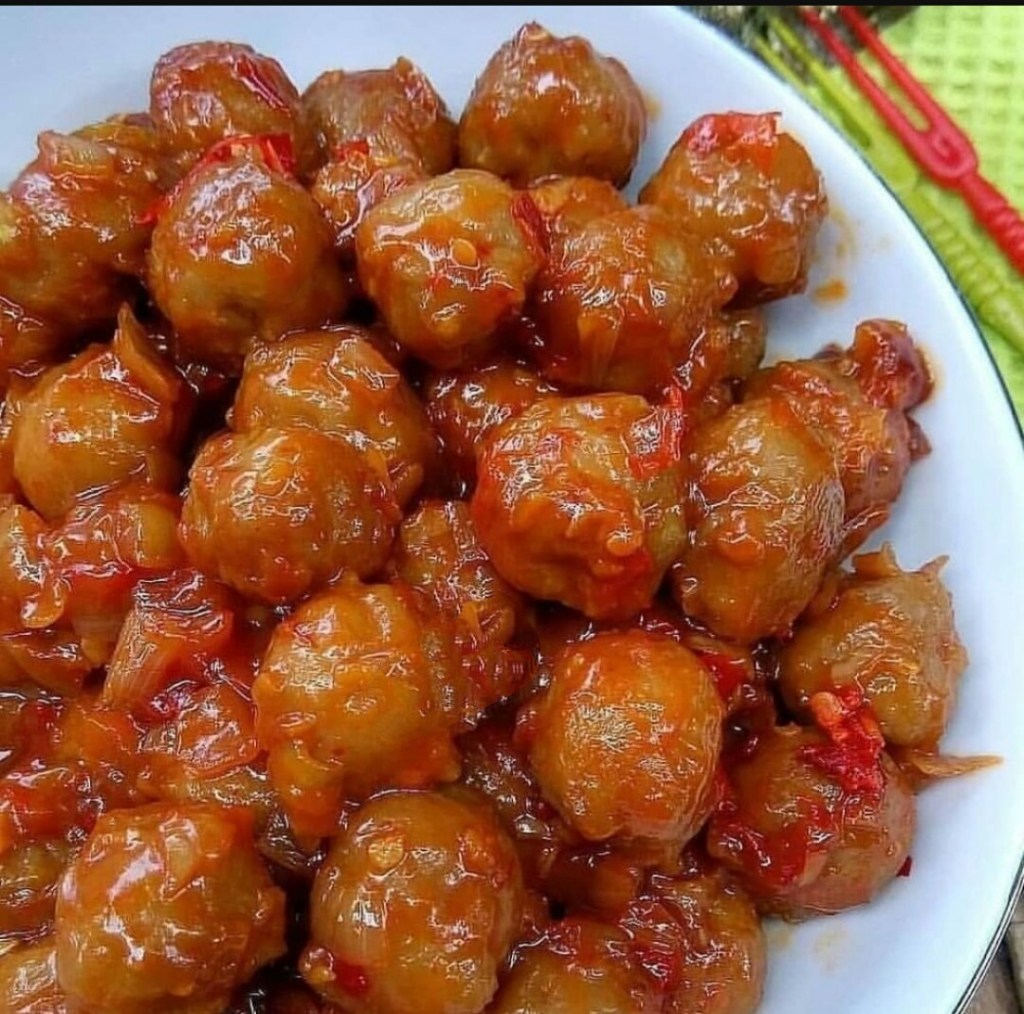 Tumis bakso pedas manis